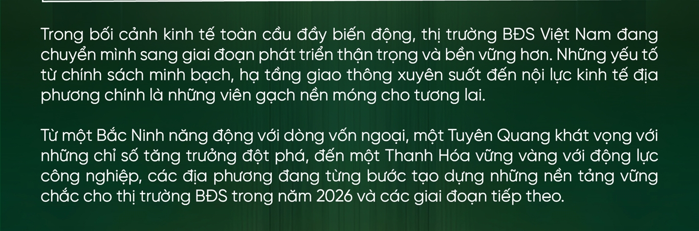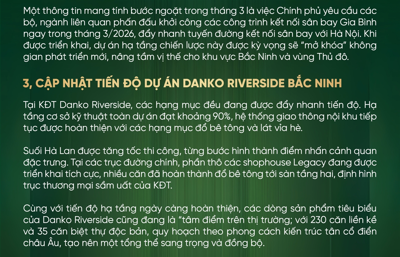 Tháng 12 tiếp tục ghi nhận nhiều chuyển động tích cực trên thị trường bất động sản (BĐS) Bắc Ninh và Tuyên Quang - những địa phương có tốc độ phát triển kinh tế ổn định và đang mở rộng diện mạo đô thị. Song song với đó, tiến độ tại các dự án của Danko Group cùng chuỗi hoạt động văn hóa, nghệ thuật cuối năm cũng tạo thêm điểm nhấn cho bức tranh đô thị tại khu vực.