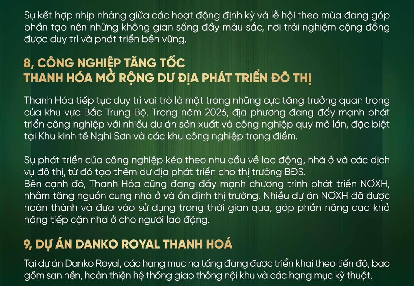 Sáng ngày 10/10/2025, tại phường Quảng Phú (tỉnh Thanh Hóa), Tập đoàn Danko đã tổ chức thành công lễ khởi công dự án Danko Royal – khu đô thị mới có quy mô gần 24ha, được kỳ vọng góp phần mở rộng không gian phát triển về phía Nam sông Mã của tỉnh Thanh Hoá và hoàn thiện hạ tầng đô thị khu vực.